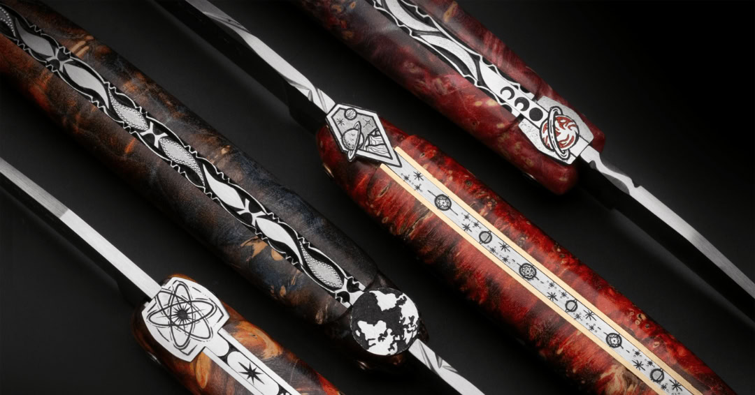 La collection COSMOS est bien plus qu’une série de couteaux d’exception : c’est une traversée symbolique de l’univers, transposée dans des pièces artisanales à forte dimension artistique. Chaque modèle mêle loupe de sureau teintée, guillochages célestes et mouches sculptées uniques pour offrir un hommage vibrant aux merveilles cosmiques.